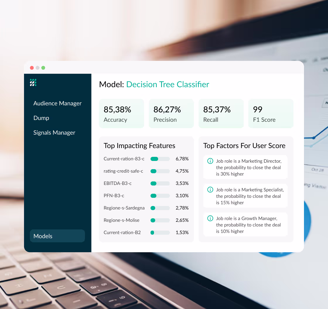 Full visibility into feature importance and model logic. No black boxes: you see exactly why a prediction was made.
