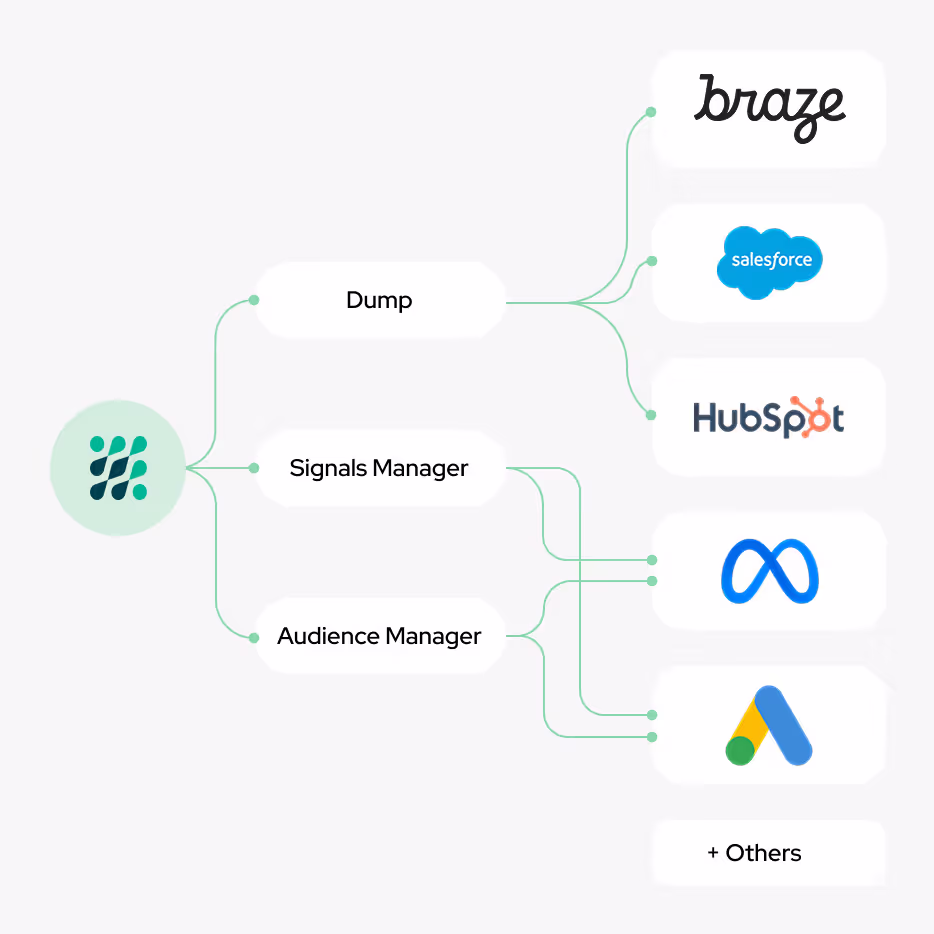 The platform provides direct connections, APIs, and Dumps to seamlessly integrate with all marketing platforms while ensuring security and a privacy-first approach.
